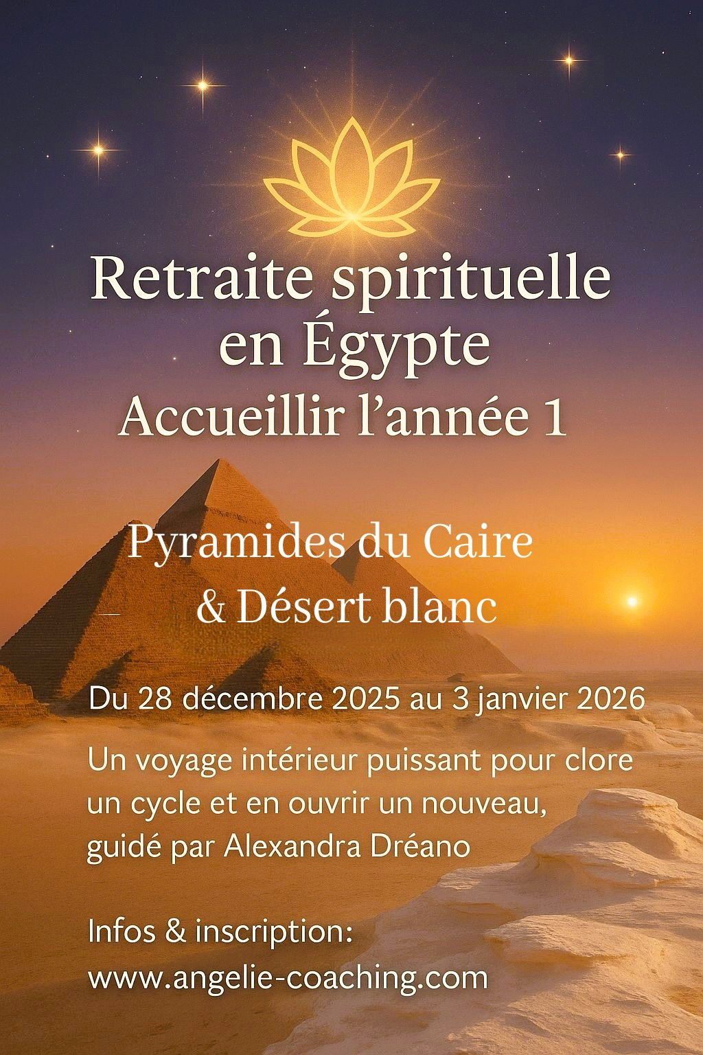Une retraite aux Pyramides et dans le désert blanc, un voyage intérieur puissant pour clore un cycle et en ouvrir un nouveau, guidée par Alexandra Dreano